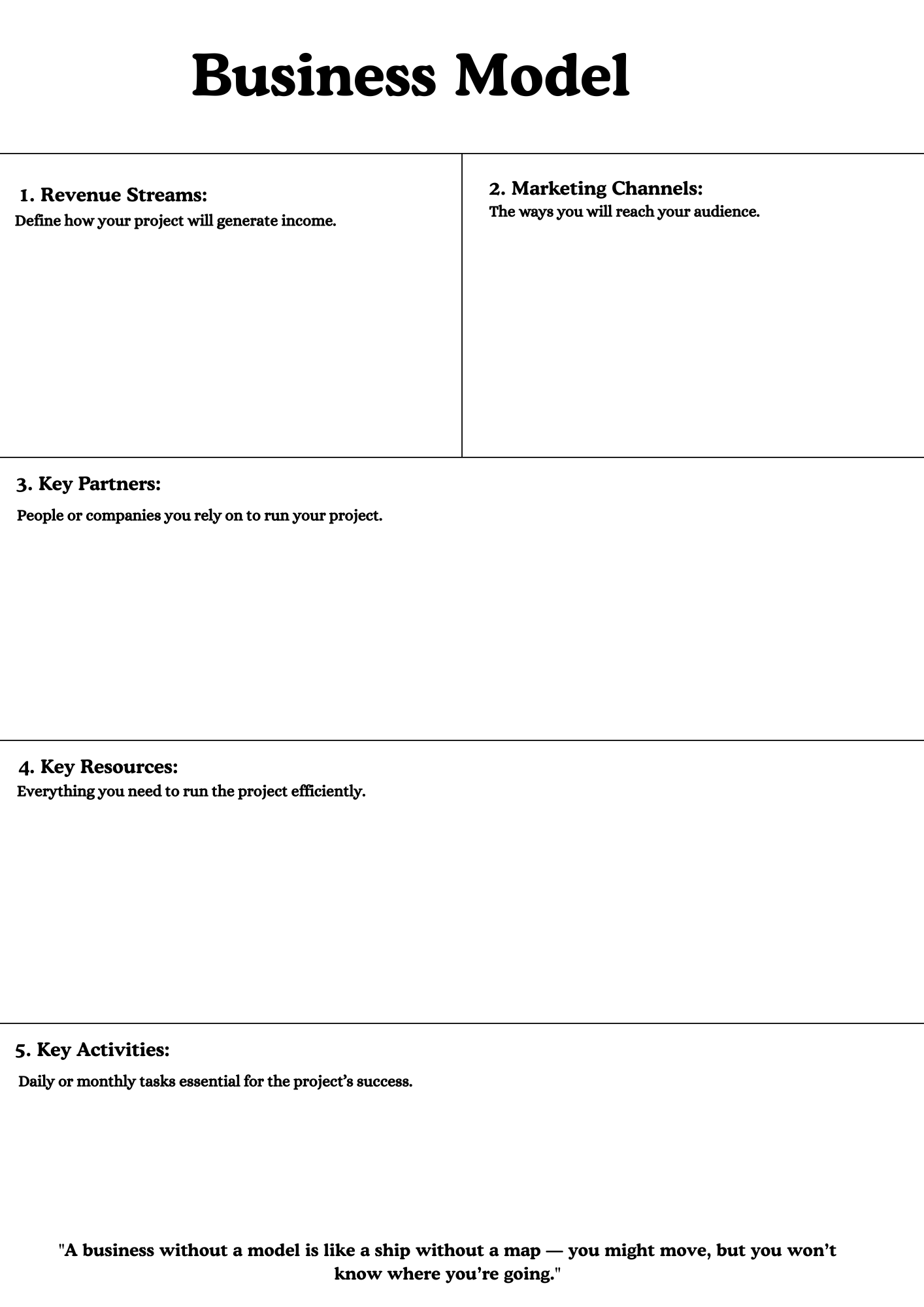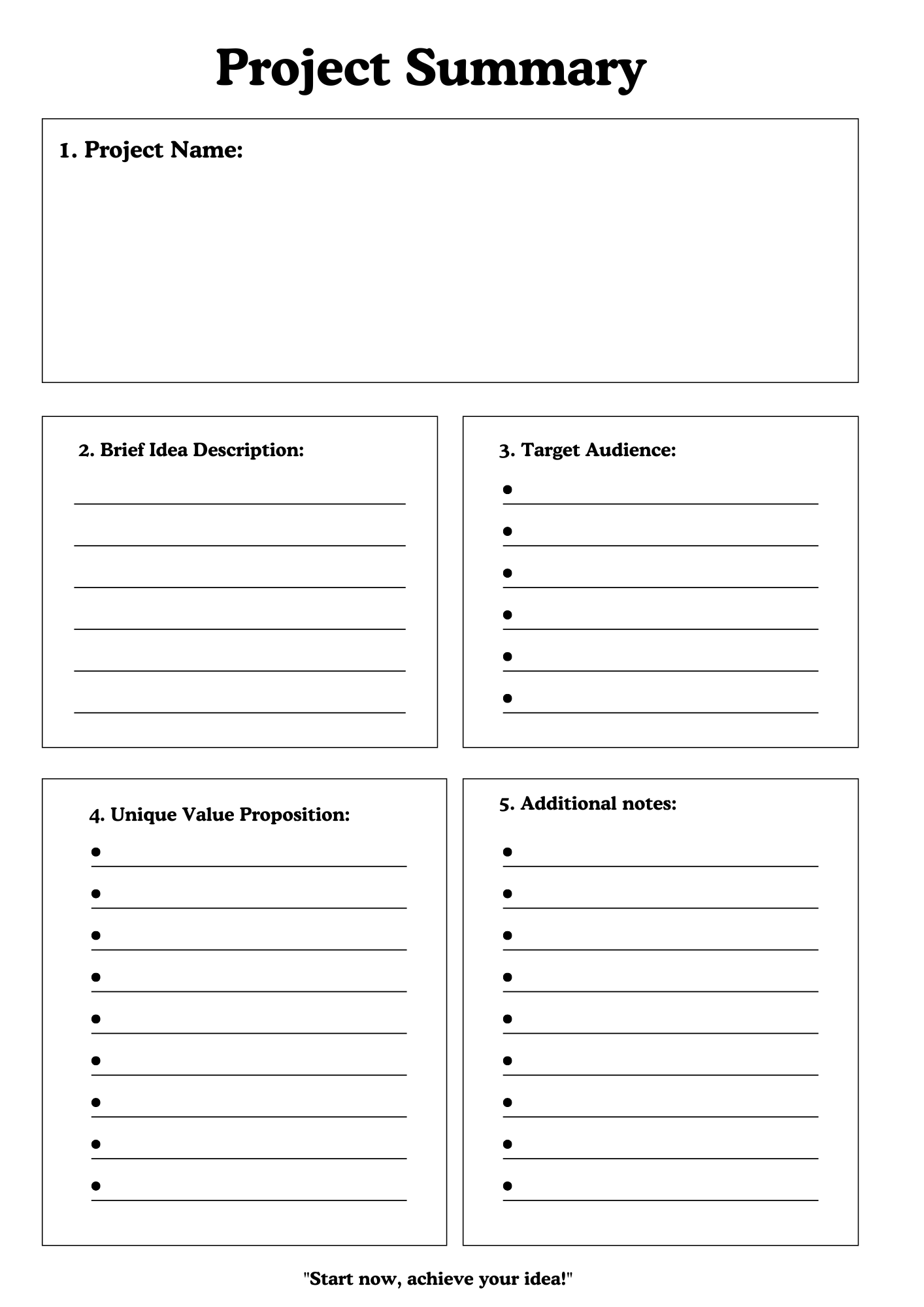 Get the step-by-step visual roadmap to launch your project quickly and clearly. The template includes 11 well-organized pages and comes with a filled-in version to make starting effortless!