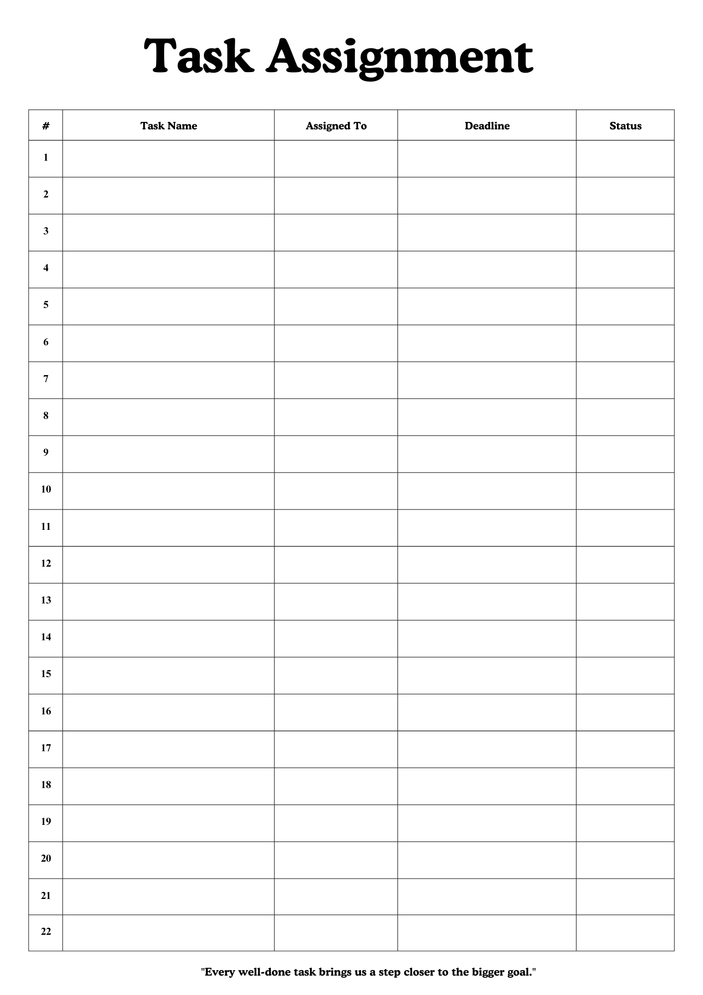 21 Comprehensive Pages: For task planning, tracking achievements, assigning responsibilities, and scheduling for each team member.